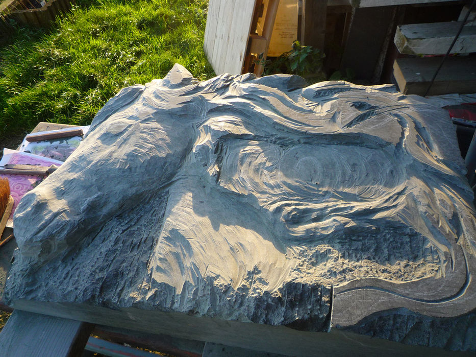 Titel: "Sea of love" Materiaal: zalm albast Afmeting: 40 cm hoog en 40 cm breed